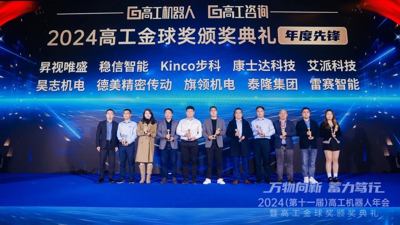 2024年12月21日晚,以“向新向智 中國(guó)力量”為主題的2024(第十一屆)高工機(jī)器人年會(huì)暨高工金球獎(jiǎng)?lì)C獎(jiǎng)典禮在深圳機(jī)場(chǎng)凱悅酒店圓滿落幕。泰隆集團(tuán)受邀攜BXJ系列精密減速機(jī)驚艷亮相展會(huì),憑借在產(chǎn)品技術(shù)創(chuàng)新以及智能工廠建設(shè)方面的卓越表現(xiàn),公司在典禮上喜獲“年度先鋒企業(yè)獎(jiǎng)”。