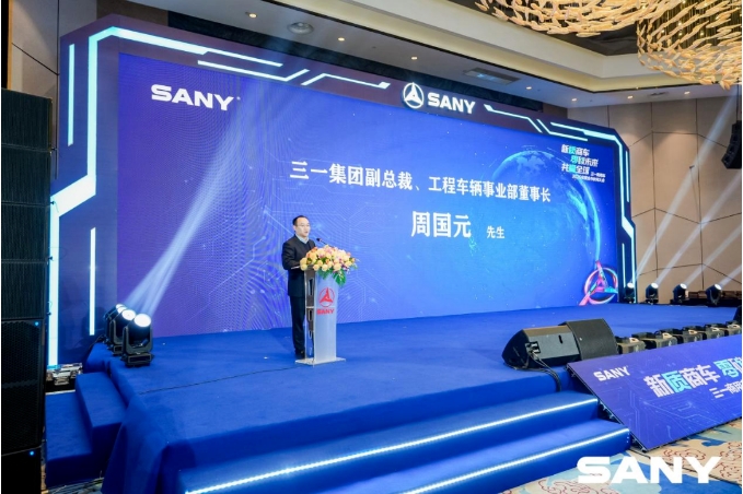 三一集團董事、重卡事業部董事長梁林河,三一集團副總裁、三一工程車輛事業部董事長周國元,三一集團副總裁、商用車智造公司CEO吳盛楠,三一集團副總裁、泵路事業部董事長蔣慶彬等領導出席此次會議。