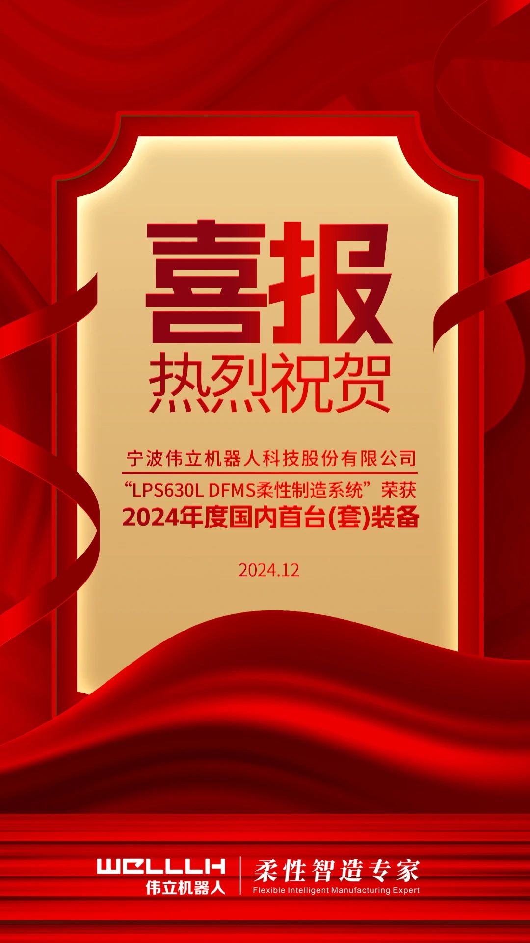 寧波偉立機(jī)器人科技股份有限公司“LPS630L DFMS柔性制造系統(tǒng)”榮獲2024年度國(guó)內(nèi)首臺(tái)(套)裝備。