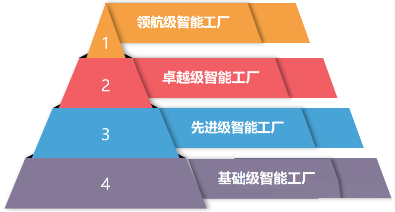 按照梯度培育方案,將智能工廠分為:基礎(chǔ)級(jí)、先進(jìn)級(jí)、卓越級(jí)和領(lǐng)航級(jí)四個(gè)層次,其中領(lǐng)航級(jí)為智能工廠的最高境界。