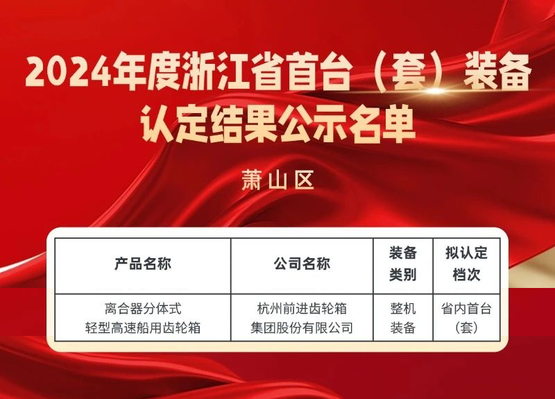 近日,省經(jīng)信廳發(fā)布了2024年度浙江省首臺(tái)(套)裝備認(rèn)定結(jié)果公示名單,杭齒集團(tuán)“離合器分體式輕型高速船用齒輪箱”項(xiàng)目產(chǎn)品通過(guò)認(rèn)定。