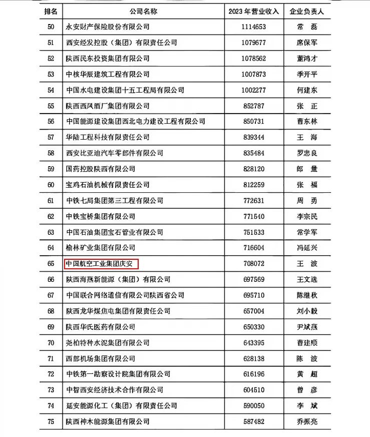 近日,陜西省企業家協會公布了2024陜西百強企業名單,中航工業慶安脫穎而出,位列第65位,排名較上年度上升10位!該榮譽充分展現出中航工業慶安當前良好的可持續發展態勢。