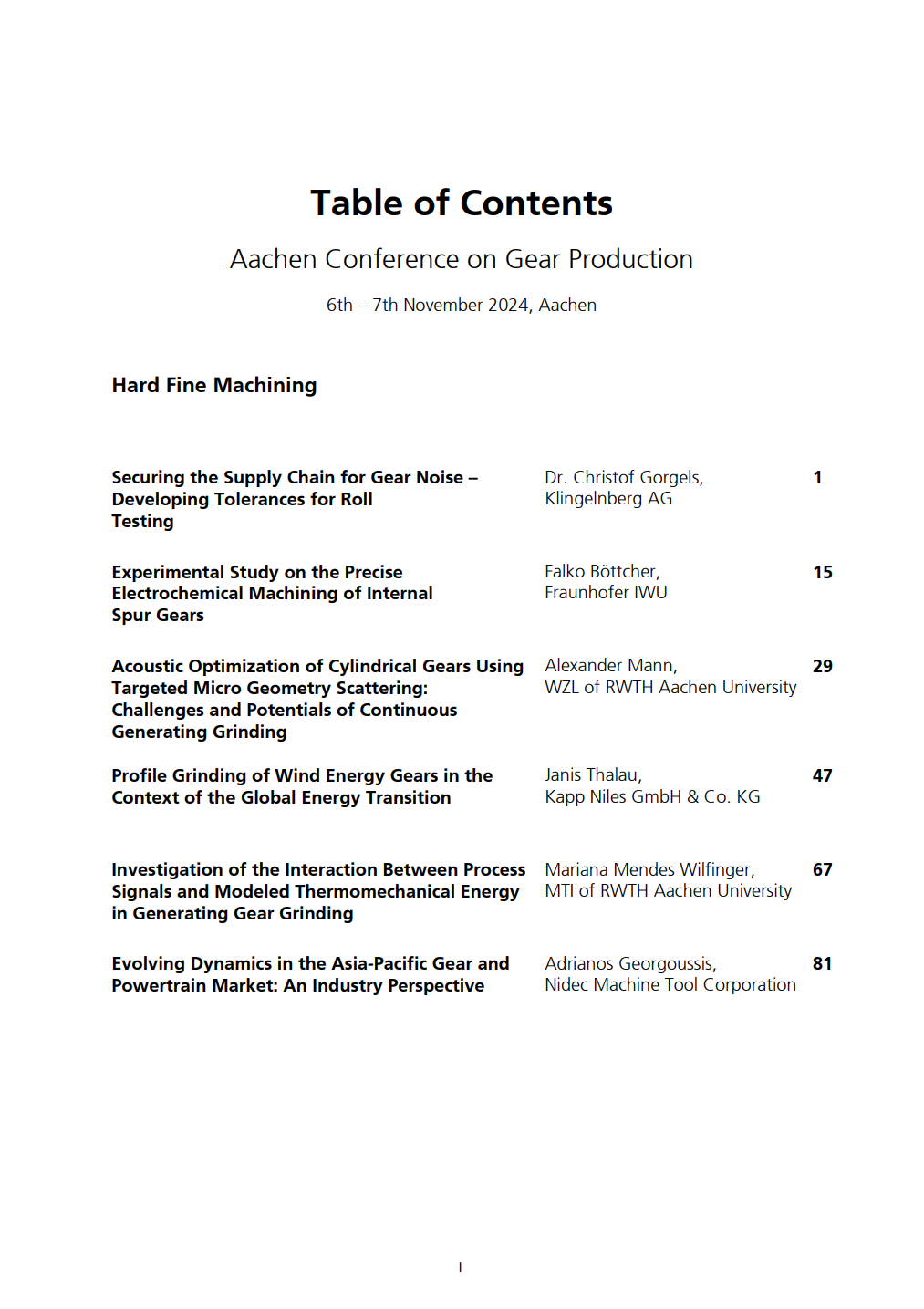 [編者按] 德國(guó)亞琛齒輪生產(chǎn)技術(shù)論壇(Aachen Forum on Gear Production (AFGP))是個(gè)非常有特色、緊扣當(dāng)代齒輪前沿制造技術(shù)的會(huì)議。固定在亞琛每年11月召開(kāi),已連辦四屆。雖然才舉辦過(guò)四次,但已在齒輪行業(yè)產(chǎn)生重大影響,成為了世界齒輪制造技術(shù)的風(fēng)向標(biāo)。2024年這次論壇專門面向齒輪技術(shù)創(chuàng)新(Innovations in Gear Technology),安排了系列報(bào)告,報(bào)告?zhèn)€個(gè)精彩,反映了齒輪技術(shù)的前沿研究熱點(diǎn)和發(fā)展方向。此次會(huì)議20個(gè)報(bào)告如下。