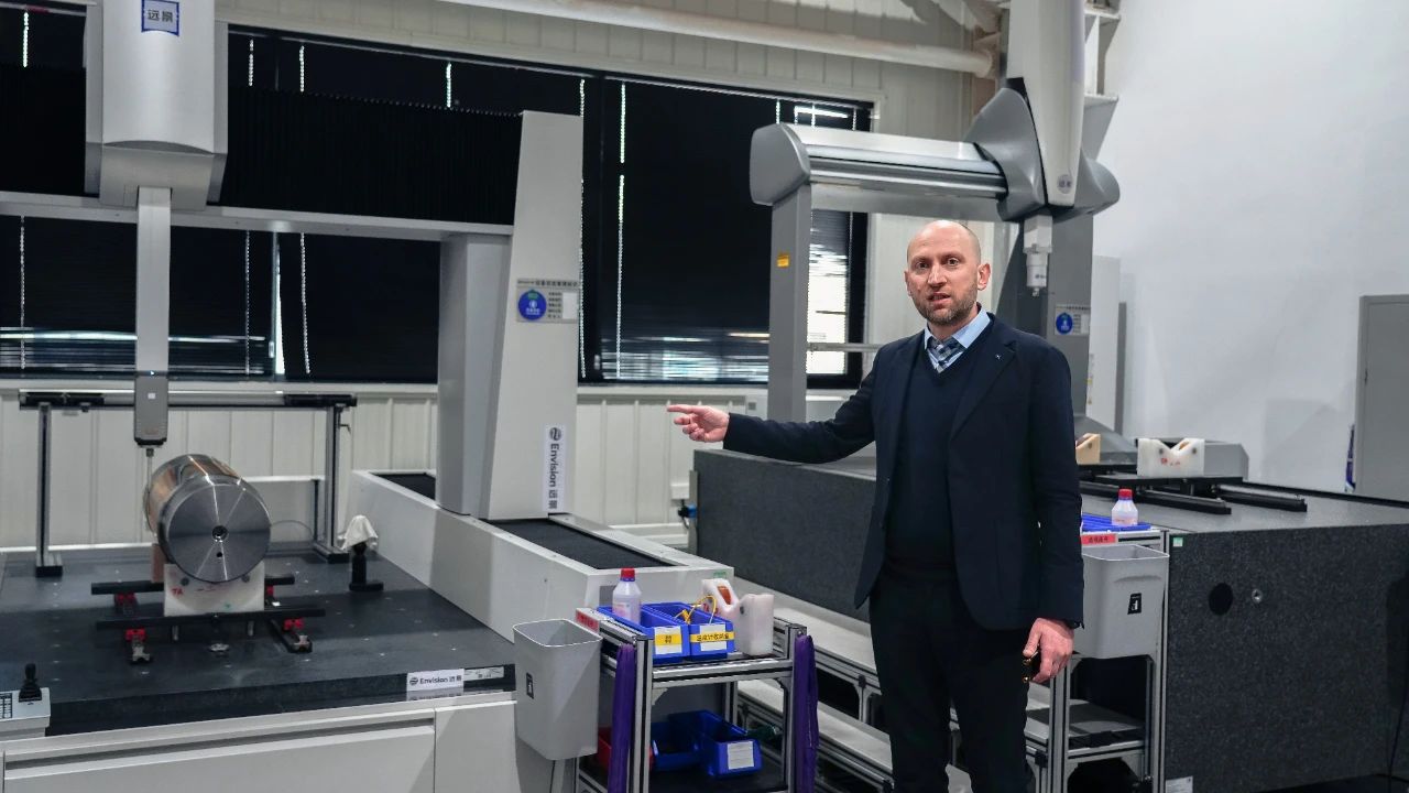 Ümit Mermerta?向記者介紹滑軸檢測過程