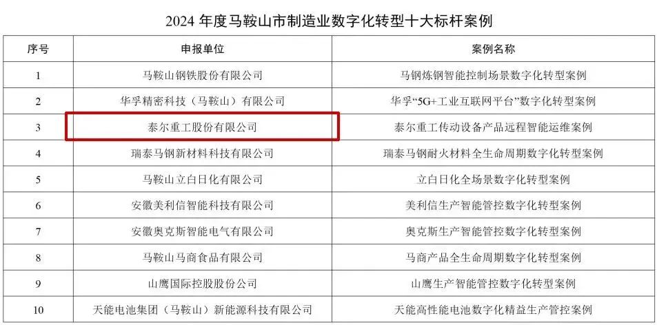 此次入選十大案例,標志著泰爾數(shù)字化轉(zhuǎn)型成果獲得政府與行業(yè)的高度認可。作為冶金行業(yè)裝備制造領(lǐng)域領(lǐng)軍企業(yè)之一,泰爾將持續(xù)深化數(shù)字技術(shù)與實體制造的融合創(chuàng)新,助力馬鞍山打造全國智慧制造新高地,為制造業(yè)高質(zhì)量發(fā)展貢獻力量。