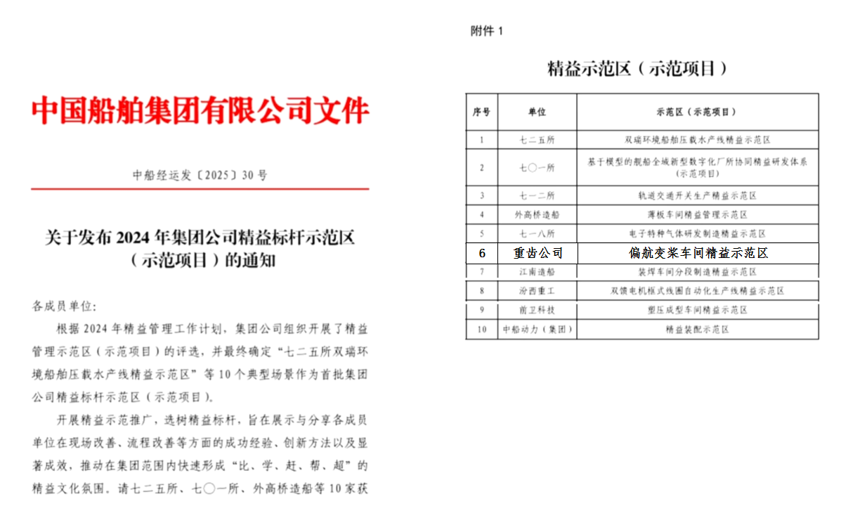 通過精益實踐,重齒公司打造的偏航變槳精益示范區典型場景被確定為集團公司首批十個精益標桿示范區之一,并在集團公司對2024年度各二級管理單位精益管理等級評定中,重齒公司在集團79家二級管理單位(價值創造類企業)精益管理等級評價中排名第三位。