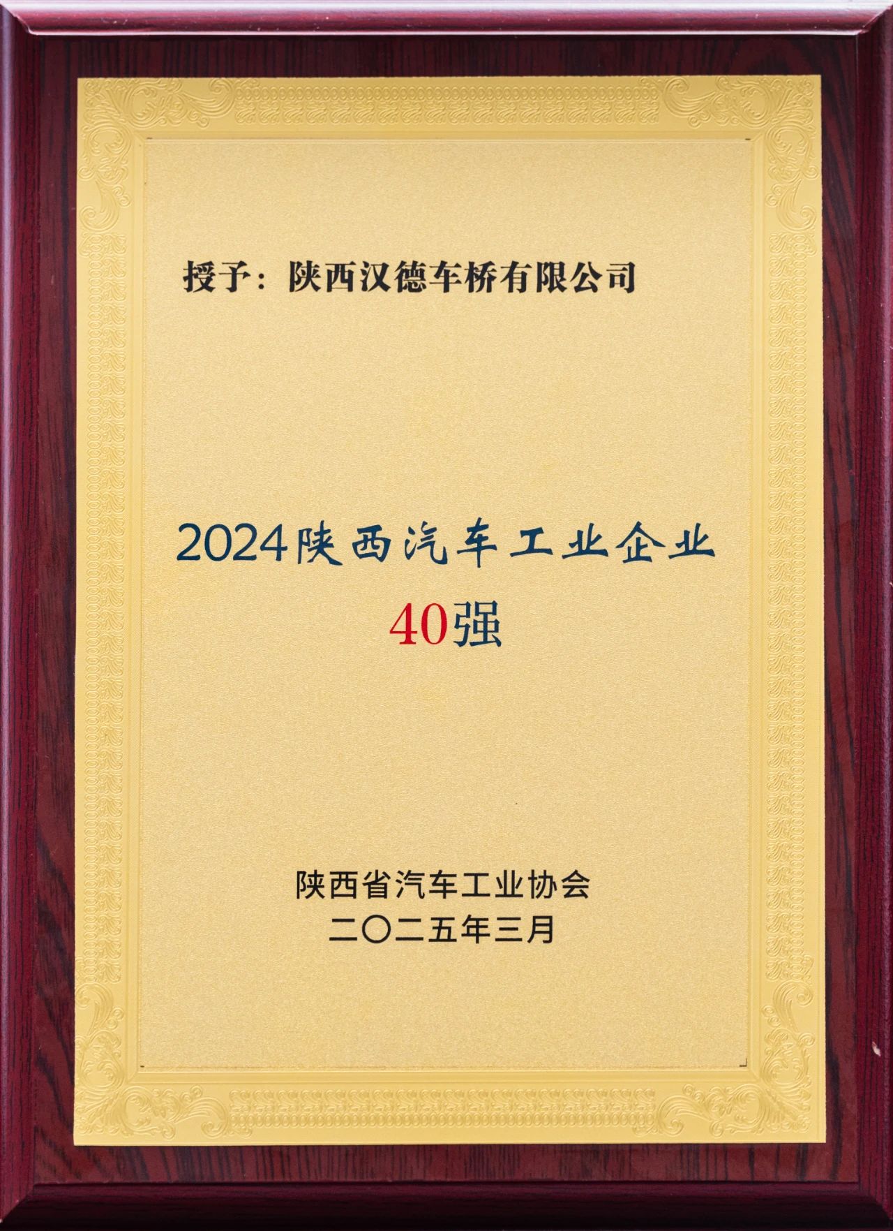近日,陜西省汽車工業協會發布“2024陜西汽車工業企業40強”榜單,漢德車橋位列第九位。
