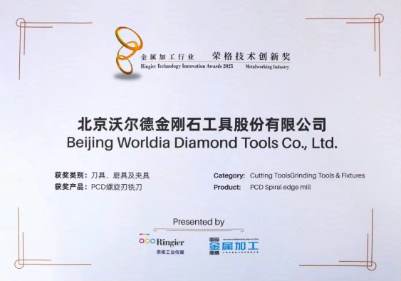 沃爾德PCD螺旋刃銑刀憑借其卓越的創(chuàng)新性與技術(shù)優(yōu)勢,成功斬獲這一極具權(quán)威性的行業(yè)大獎。此次獲獎,是沃爾德繼PSC刮刀車削系統(tǒng)及CV-Joint球道銑刀之后,在2025年獲得的又一重磅榮譽,進一步彰顯了沃爾德在高端刀具領(lǐng)域的領(lǐng)先地位。
