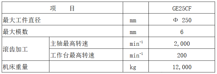 切削倒角一體化滾齒機“GE25CF”的主要規格