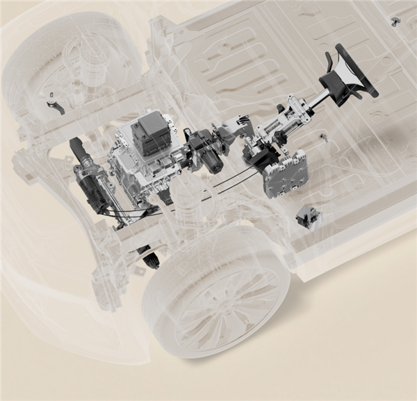 純電信號控制: ET9的線控轉向系統是一種“全動力轉向系統”,其核心特點是方向盤與轉向輪之間完全取消了機械連接,轉向指令和反饋通過電信號進行傳遞與控制。