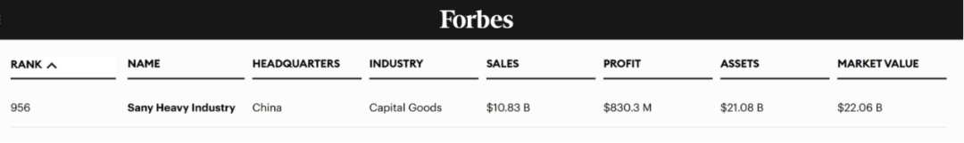 榜單期內(nèi),三一重工的營業(yè)收入為108.3億美元,利潤8.3億美元,資產(chǎn)210.8億美元,市值為220.6億美元。