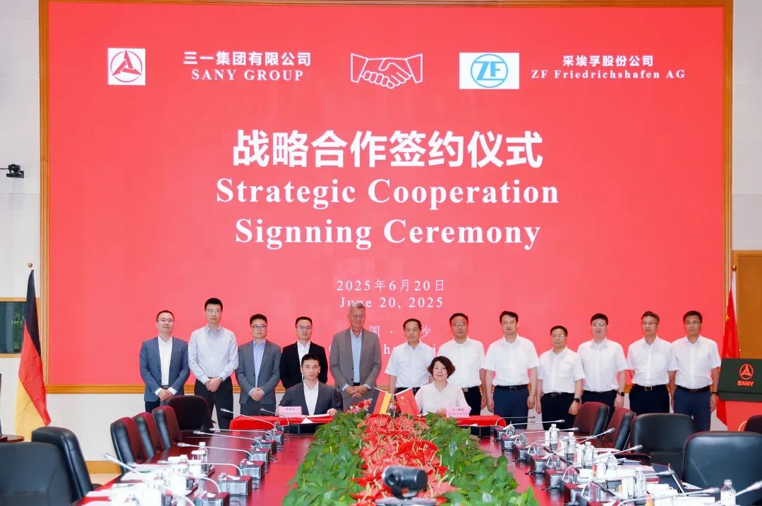 6月20日,三一集團與采埃孚在長沙簽署戰略合作協議,雙方將在技術創新、產品研發、全球市場拓展等領域開展全方位深度合作,攜手打造更具國際競爭力的高端裝備產品。
