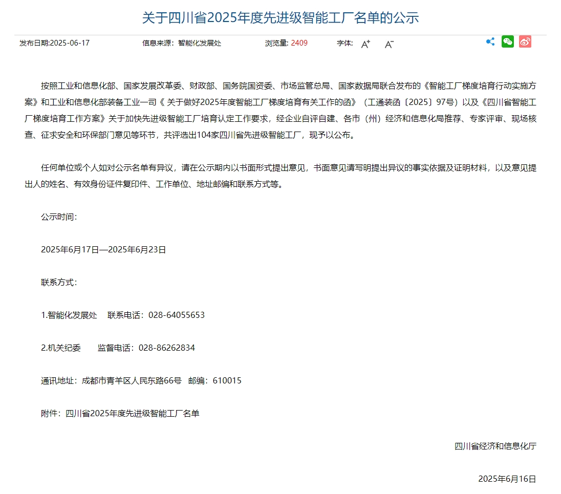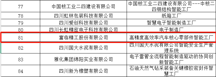 近日,四川省經濟和信息化廳公布了四川省 2025 年度先進級智能工廠名單,富臨精工—高精度高效率汽車核心零部件智能工廠成功入圍!