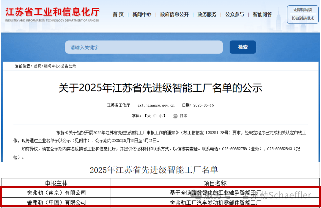 近日,江蘇省工信廳公示了《2025年第一批江蘇省先進級智能工廠名單》,舍弗勒太倉基地“舍弗勒工廠汽車發(fā)動機零部件智能工廠”項目和南京基地“基于全鏈路數(shù)智化的工業(yè)軸承智能工廠”項目榮列其中。這充分表明兩大生產(chǎn)基地積極布局智能制造,在數(shù)字化、智能化和可持續(xù)發(fā)展方面取得了卓越成果。