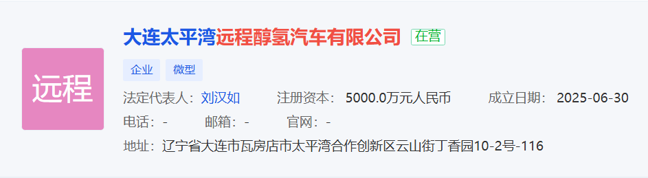 吉利旗下浙江遠(yuǎn)程新能源商用車集團(tuán)有限公司與大連太平灣合作創(chuàng)新區(qū)合創(chuàng)產(chǎn)業(yè)投資有限公司在大連合資成立遠(yuǎn)程醇?xì)淦囉邢薰荆?cè)資本5000萬(wàn)元人民幣該公司經(jīng)營(yíng)范圍涵蓋道路機(jī)動(dòng)車輛生產(chǎn)等,明顯就是整車廠了。