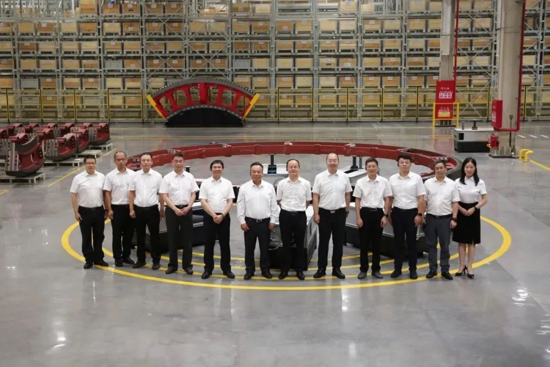 張勝利陪同何小龍一行參觀SEW天津智能制造中心、智能裝配中心及大齒圈、行星減速機制造工廠。在智能制造中心,雙方聽取了由工程研究中心作為總承包方的棒料智能上料系統項目介紹。項目建成后,將通過高精度桁架機器人,融合SEW無接觸供電及傳動技術,與智能立體庫、RGV物流等無縫銜接,實現高效協同聯動,賦能智能制造和精益管理。