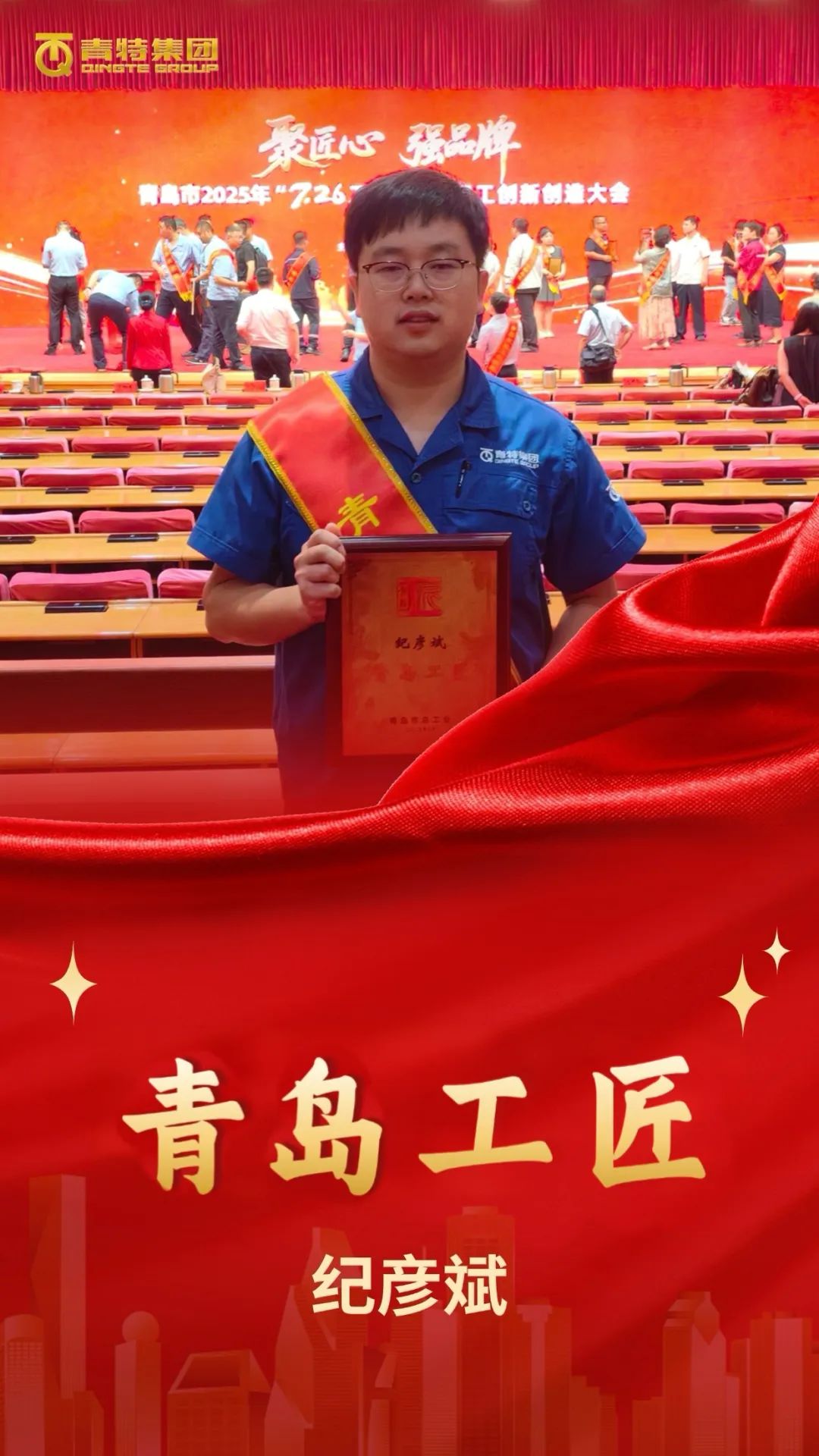 7月25日下午,“聚匠心 強品牌”青島市2025年“7·26工匠日”暨職工創新創造大會隆重舉行。大會公布了一批在技能創新、產業升級中作出突出貢獻的優秀工匠人才名單。