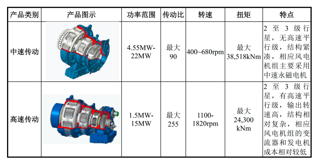 風電設備按照發電機的傳動結構不同,大致分為三類:高速傳動(雙饋)、中速傳動(半直驅)和直驅。前兩種都需要用到齒輪箱,德力佳的產品就主要服務于這兩類。