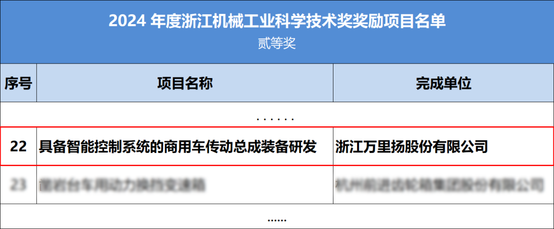 近日,萬里揚(yáng)“具備智能控制系統(tǒng)的商用車傳動(dòng)總成裝備研發(fā)”項(xiàng)目榮獲由浙江省機(jī)械工業(yè)聯(lián)合會(huì)頒發(fā)的2024年度浙江機(jī)械工業(yè)科學(xué)技術(shù)獎(jiǎng)二等獎(jiǎng)。