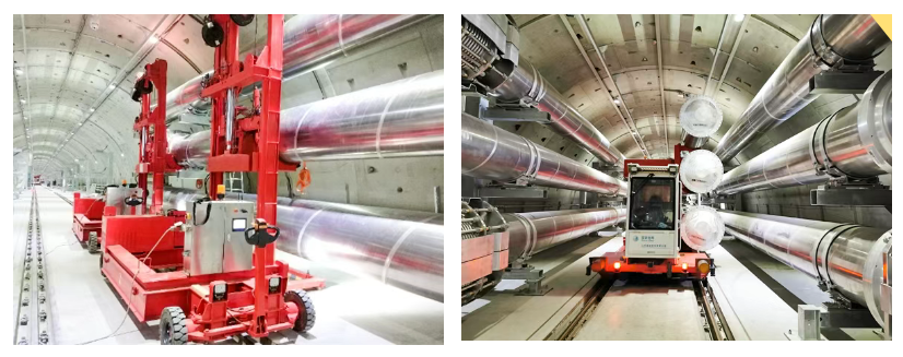 但難題接踵而至:隧道內(nèi)徑有限,管線卻又長(zhǎng)又重又嬌貴,傳統(tǒng)的工程機(jī)械連轉(zhuǎn)身都困難,更別提進(jìn)行精準(zhǔn)安裝。面對(duì)難題,太重突破傳統(tǒng),革新工藝、自主研發(fā)專用運(yùn)裝成套裝備,給出了充滿智慧的“太重方案”。