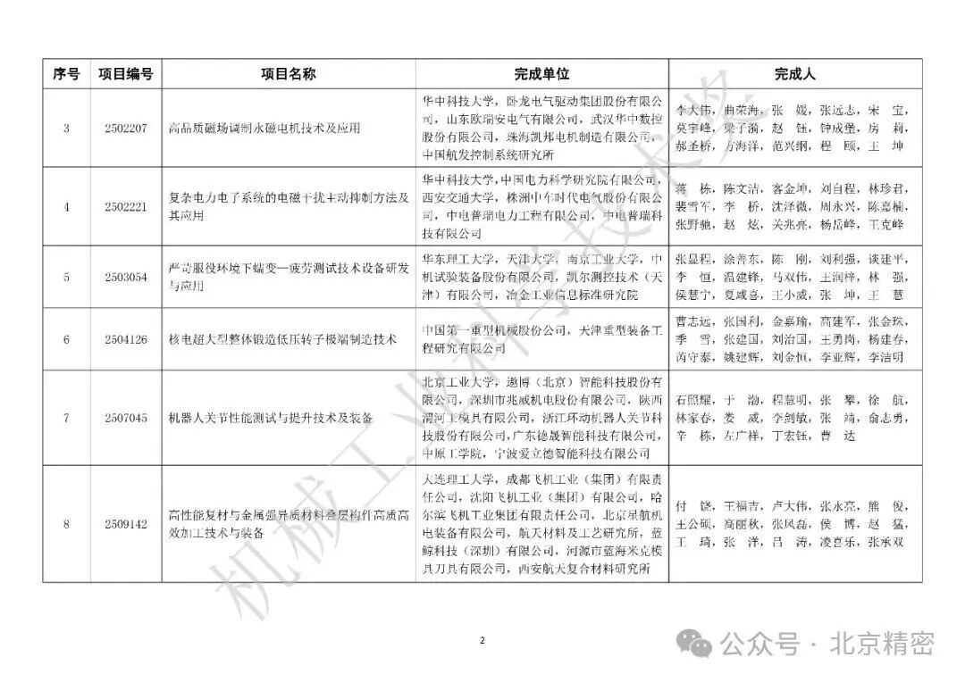 附2025年度“機械工業科學技術獎”擬授獎項目目錄
