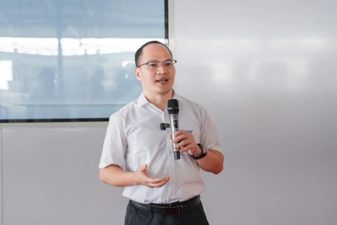 顧勇亭作重要講話。他首先對萬里揚機器人行星關節模組首臺產品成功下線表示熱烈祝賀。他強調,此次產品下線意義非凡,它不僅僅意味著一款新產品的誕生,更是萬里揚依托二十余載在精密傳動系統領域積累的深厚底蘊,在技術層面實現的又一次重大突破。從戰略高度而言,這也是萬里揚一次具有里程碑意義的重大戰略升級,為企業未來的長遠發展成功開辟了第二條增長曲線。他希望機器人團隊能夠與各兄弟單位緊密協同、攜手共進,充分利用好萬里揚的現有優勢,以時不我待的緊迫感快速推動萬里揚機器人業務蓬勃發展。