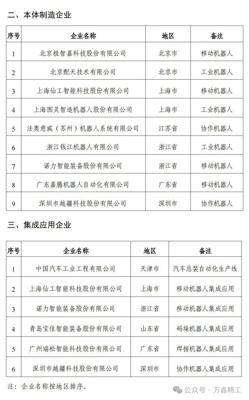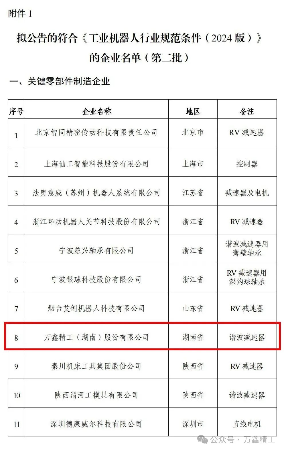 近日,工業和信息化部公示符合《工業機器人行業規范條件(2024版)》的企業名單(第二批),我省的萬鑫精工(湖南)股份有限公司擬入選。具體公示內容和名單如下: