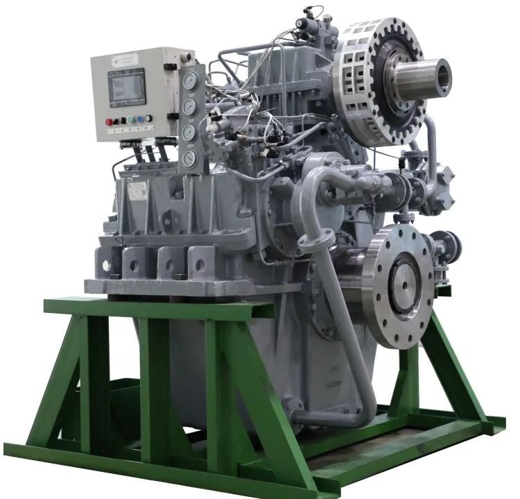HCE6335型齒輪箱配套應用于國內首艘9000DWY新能源散貨船,集成了PTO發電與PTH單獨驅動及PTO/PTH剎車等多項功能,其核心亮點在于混合動力設計與智能控制系統。在常規航行中可通過PTH發電為電池充電,進港時可切換為PTO電機純電驅動,實現低碳運行。該齒輪箱搭載智能傳感與控制系統,全航段模式切換僅需單一指令即可自動完成,大幅提升操控效率。