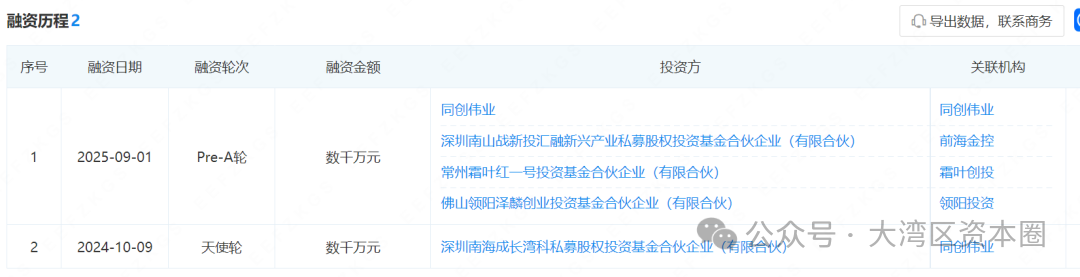 根據企查查顯示,2024年完成數千萬元由同創偉業投資的天使輪。