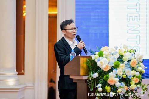 愛磁科技寧波有限公司銷售總監余杰先生分享的報告是:《全球首款“零背隙+超高效率”架構精密減速器》,該產品為愛磁科技自主研發,填補了高節拍場景專用減速器的空白,推動高端裝備制造業升級。