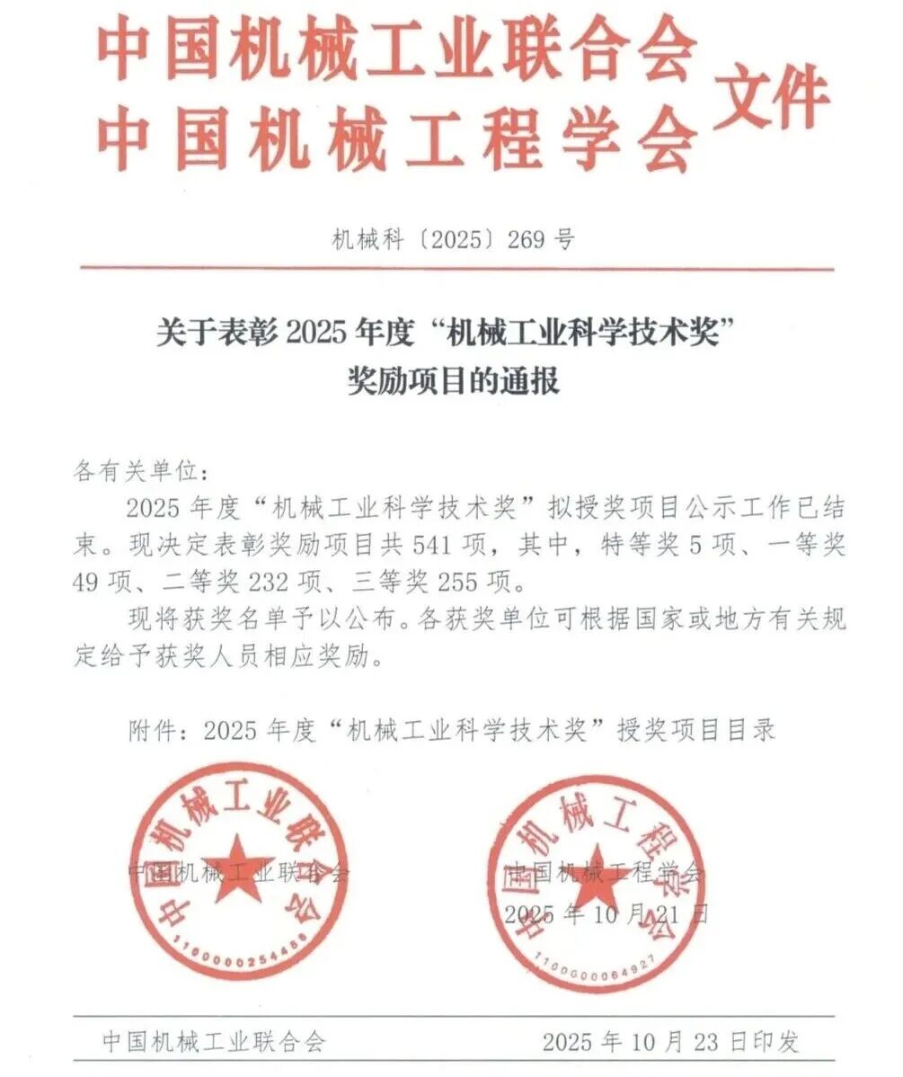 中國機(jī)械工業(yè)科學(xué)技術(shù)獎(jiǎng)由中國機(jī)械工業(yè)聯(lián)合會(huì)和中國機(jī)械工程學(xué)會(huì)共同設(shè)立并經(jīng)國家科學(xué)技術(shù)部批準(zhǔn),是在國家科技獎(jiǎng)勵(lì)主管部門登記的面向全國機(jī)械行業(yè)的綜合性科技獎(jiǎng)項(xiàng),旨在表彰在機(jī)械工業(yè)科技工作中作出突出貢獻(xiàn)的單位和個(gè)人。