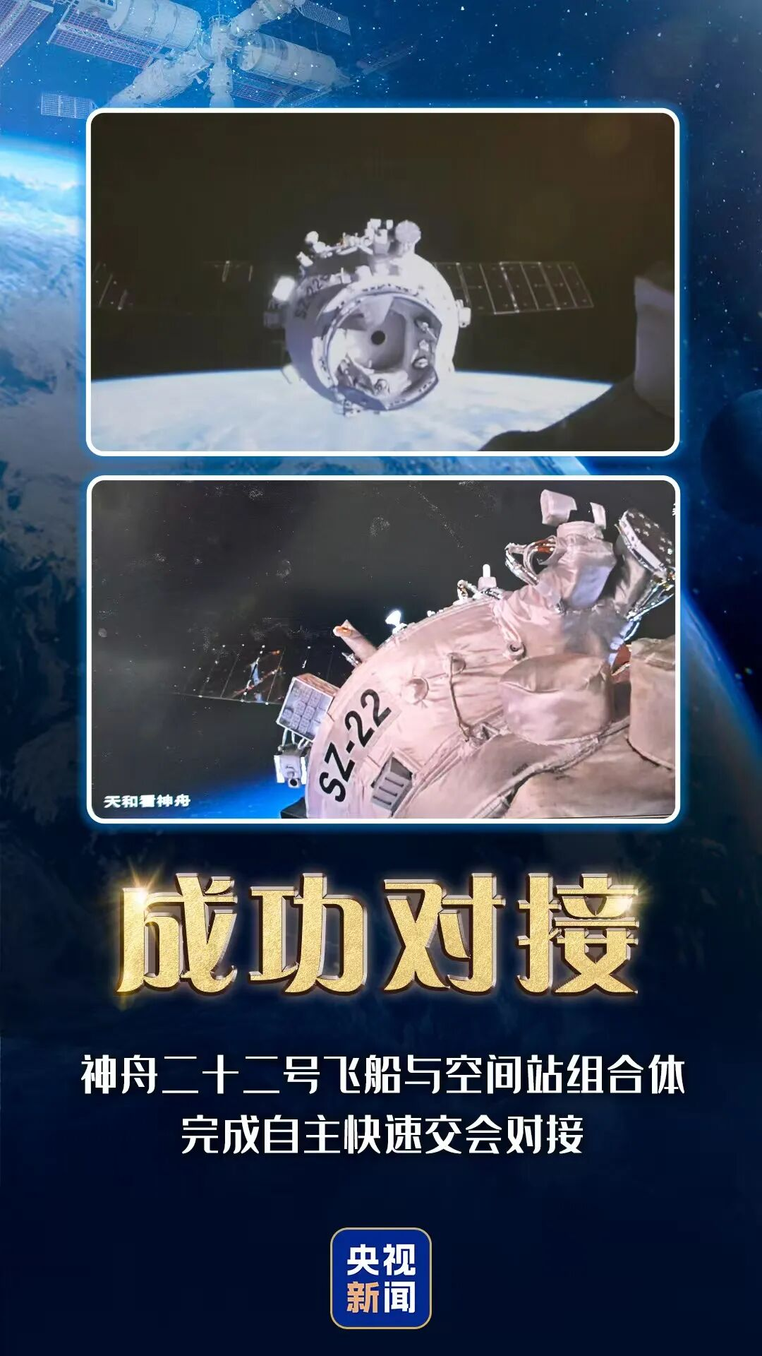 據中國載人航天工程辦公室消息,神舟二十二號飛船入軌后順利完成狀態設置,于北京時間2025年11月25日15時50分,成功對接于空間站天和核心艙前向端口。交會對接完成后,神舟二十二號飛船將轉入組合體停靠段,后續將作為神舟二十一號航天員乘組的返回飛船。