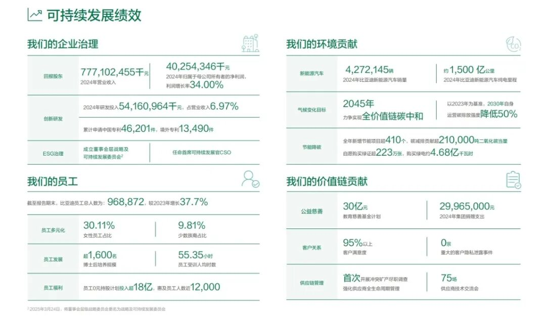 通過以上卓越的ESG實踐,我們不僅在評級分數(shù)上取得突破性進展,亦在今年榮獲福布斯中國“2025中國ESG 50”榜單、央視“中國ESG上市公司先鋒100”榜單等多項榮譽,成為新能源汽車行業(yè)ESG標桿。這些認可既是我們響應國家綠色低碳政策、踐行全球可持續(xù)發(fā)展承諾的體現(xiàn),也彰顯了比亞迪將ESG融入戰(zhàn)略、打造核心競爭力的決心。