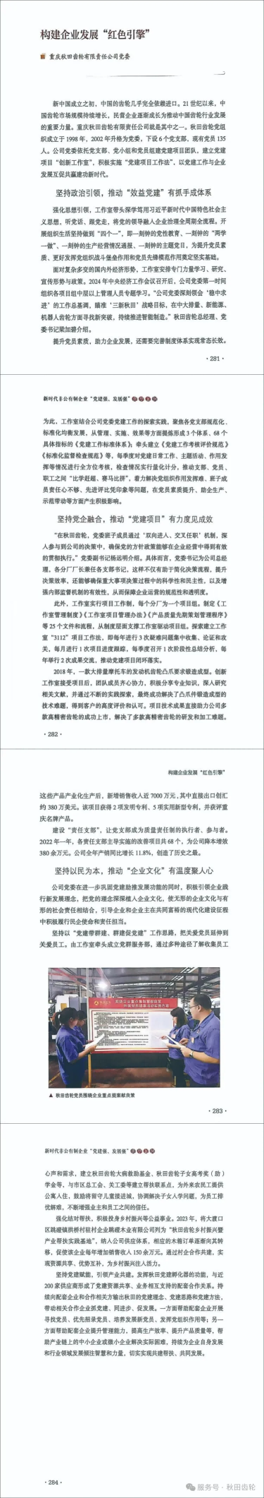 近日,重慶秋田齒輪有限責任公司黨委的《構建企業發展“紅色引擎”》非公企業黨建工作案例,成功入選了中央社會工作部的《新時代非公有制企業“黨建強、發展強”典型案例》。