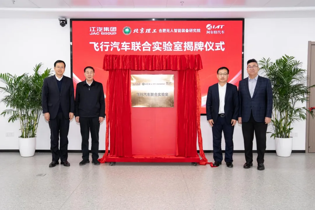 注:中國汽車工程學會飛行汽車分會主任委員項昌樂院士、包河區委書記周天斌、江汽集團控股公司董事、股份公司總經理李明、阿爾特汽車總經理張立強為聯合實驗室揭牌