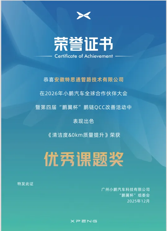 在同期舉辦的第四屆“鵬翼杯”鵬鏈QCC活動大賽中,中鼎股份旗下安徽特思通管路技術(shù)有限公司憑借課題《清潔度&0公里質(zhì)量提升》榮獲“優(yōu)秀課題獎”,進一步體現(xiàn)了中鼎在供應鏈質(zhì)量管理與持續(xù)改進方面的系統(tǒng)能力。