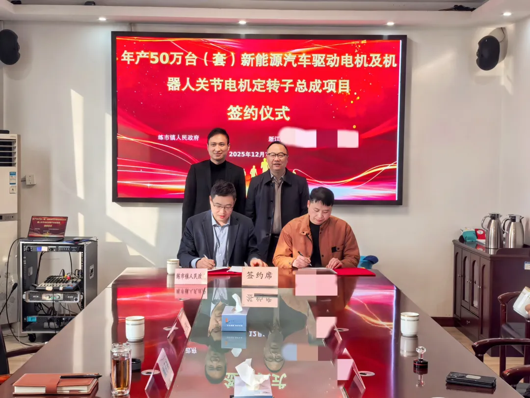 近日,練市鎮人民政府就“年產50萬臺(套)新能源汽車驅動電機及機器人關節電機定轉子總成項目”舉行簽約儀式。