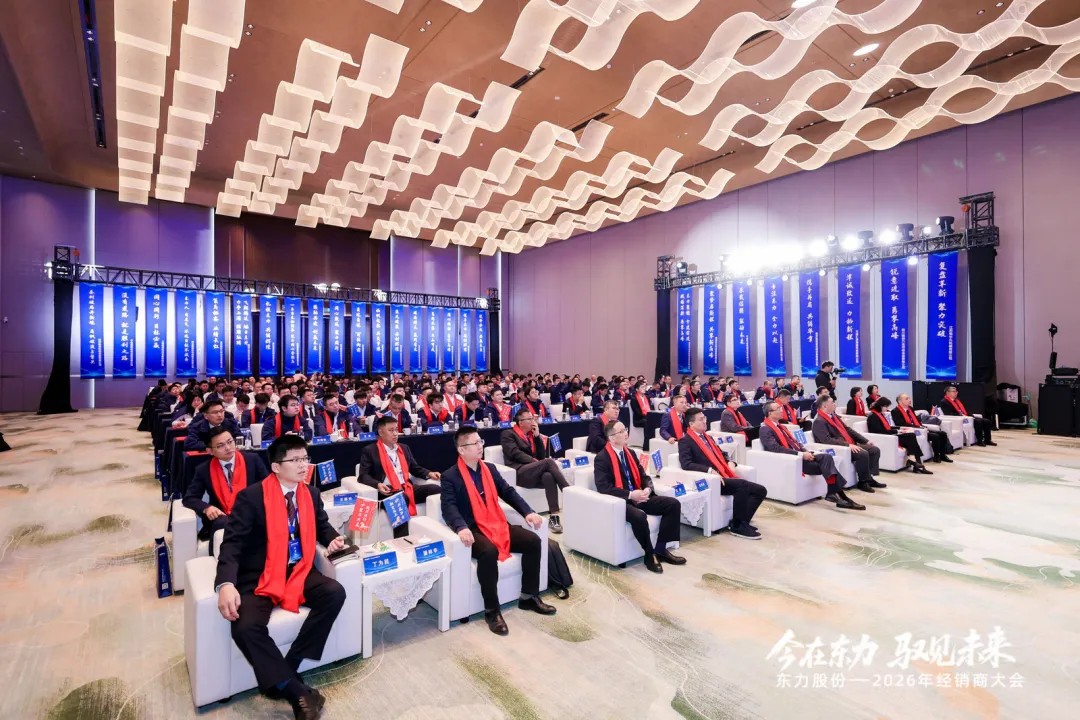 五湖四海聚東力,同心共繪東力藍。1月11日,東力股份2026年經銷商大會在前灣新區首旅南苑酒店隆重舉行,行業翹楚與渠道伙伴齊聚一堂,共探市場發展新機遇,共商品牌提質新路徑,共啟產業躍升新征程。