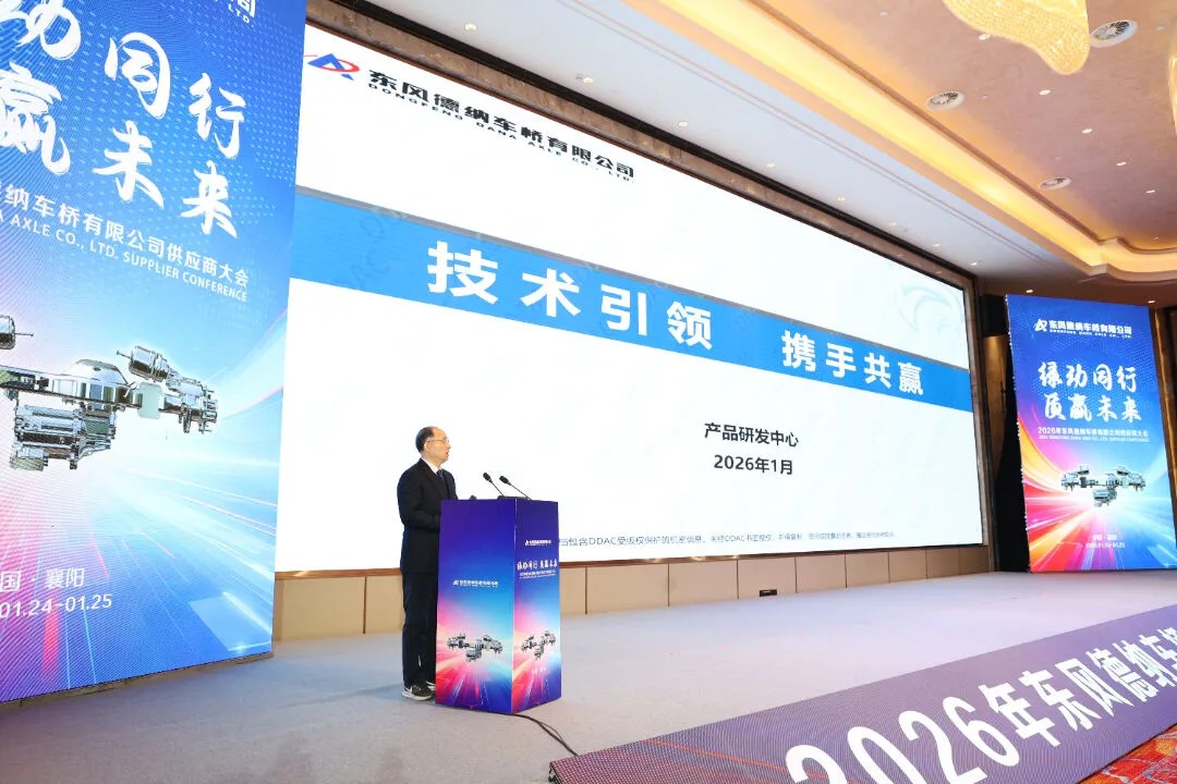 東風(fēng)商用車有限公司總經(jīng)理劉利成、東風(fēng)德納車橋有限公司管理層與全國供應(yīng)商伙伴齊聚一堂,共同回顧逆勢增長的2025年,明確面向未來的“六大協(xié)同”行動計劃,攜手錨定高質(zhì)量發(fā)展新航道。
