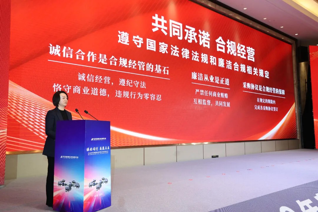 東風(fēng)德納車橋紀(jì)委書記張凌云表示,廉潔是溫暖的守護,守護產(chǎn)業(yè)鏈的共同事業(yè),照亮前行的道路。她向戰(zhàn)略伙伴倡議:以廉潔為基石,共赴“綠動同行,質(zhì)贏未來”的征程,同書“廉潔致遠,‘橋’見未來”的新篇。