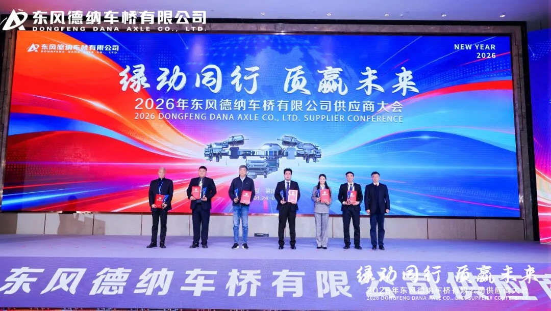 大會隆重表彰了2025年度優(yōu)秀供應(yīng)商。東風(fēng)德納車橋總經(jīng)理馮義,常務(wù)副總經(jīng)理陸定文,副總經(jīng)理嚴(yán)兵、王軍、張延泗為供應(yīng)商頒獎。