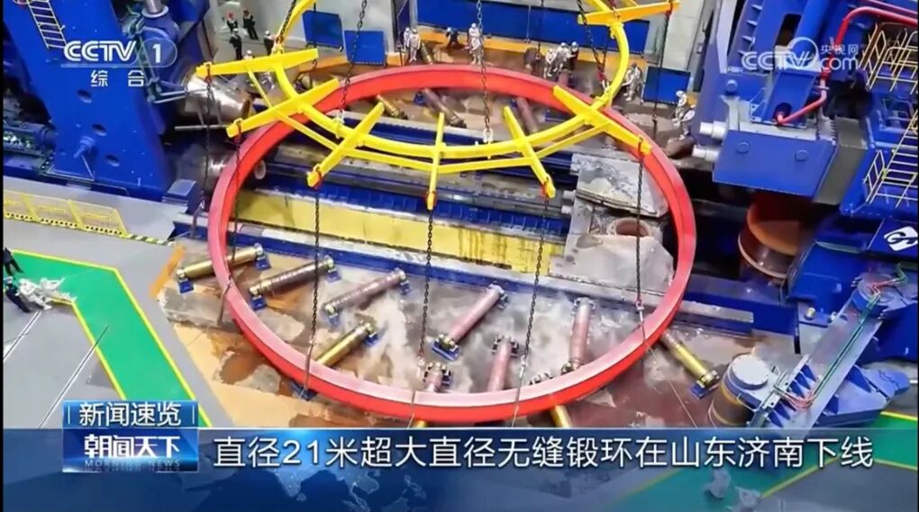 近日,央視《朝聞天下》報(bào)道,一件直徑達(dá)21米的超大直徑無(wú)縫鍛環(huán)在山東濟(jì)南成功下線。該鍛環(huán)采用一體成形工藝,將主要應(yīng)用于水利水電、高端煉化等國(guó)家重大裝備領(lǐng)域,標(biāo)志著我國(guó)在高端鍛造領(lǐng)域?qū)崿F(xiàn)跨越式突破,技術(shù)水平邁入全球領(lǐng)先行列。