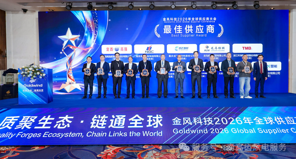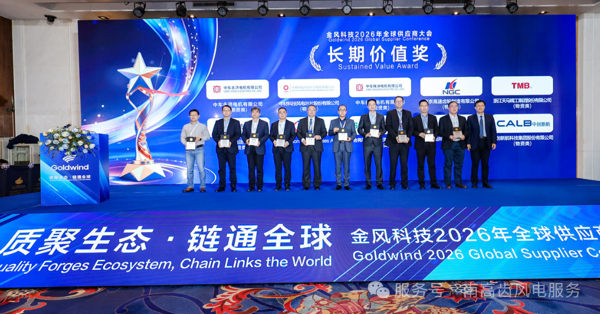 2026年2月2日,金風科技2026年全球供應商大會隆重召開。本次大會以"系統(tǒng)總結(jié)'十四五'豐碩成果,攜手邁向'十五五'嶄新征程"為主要內(nèi)容,匯聚全球新能源領域伙伴,共探市場趨勢,解讀戰(zhàn)略規(guī)劃,聚力構(gòu)建全優(yōu)產(chǎn)業(yè)鏈生態(tài),打造休戚與共的產(chǎn)業(yè)鏈命運共同體。會上,全球風電齒輪箱領域領軍企業(yè)南高齒表現(xiàn)突出,一舉斬獲"最佳供應商獎","優(yōu)秀綠色供應商獎","長期價值獎"三項重磅榮譽,彰顯核心部件企業(yè)標桿實力。