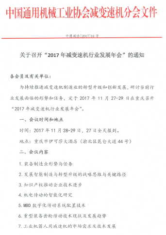 關于召開“2017年減變速機行業發展年會”的通知