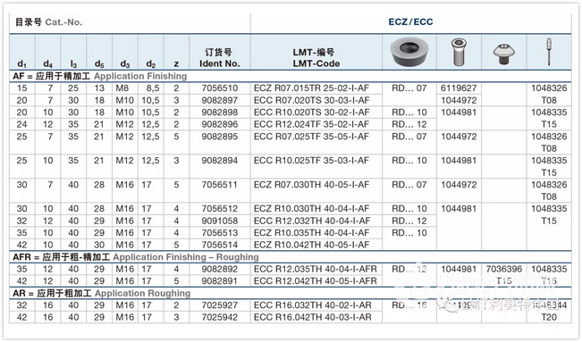 AFR = 應用于精加工+粗加工也適合精加工和中等粗加工