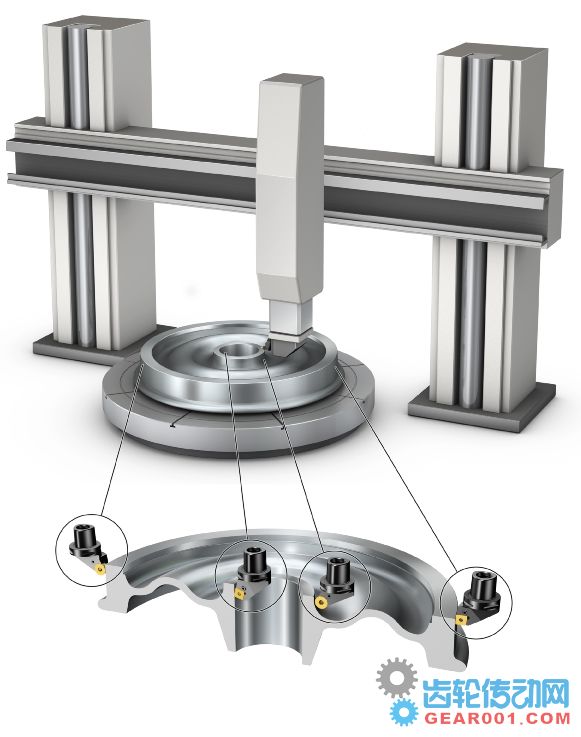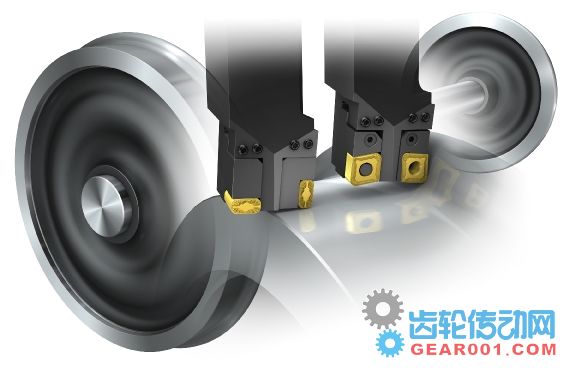 從機床或切削刀具的角度來看,鐵道車輛用車輪屬于加工密集型產品,并且同樣也是應用開發的目標。鐵路車輪重車涉及加工特種機械,需要經常保養維修。其中刀具選擇與具體應用取決于待車削車輪的類型與車輪主要部分的情況。正如所有加工一樣,機床功率對切削參數尤其會產生一些影響,而最大化切削深度可以縮短整體的切削時間。如果機床功率足夠,車輪輪廓就能夠通過一次走刀車削成型。否則,就必須分階段加工才能獲得所需的車輪輪廓和尺寸。尤其是所加工的車輪受摩擦力驅動時,如同許多不落輪機床一樣,車輪安置于鐵路車輛上,因此可能需要多個階段才能完成加工。根據加工類型和機床情況,具體應用的方法可以有很多種。