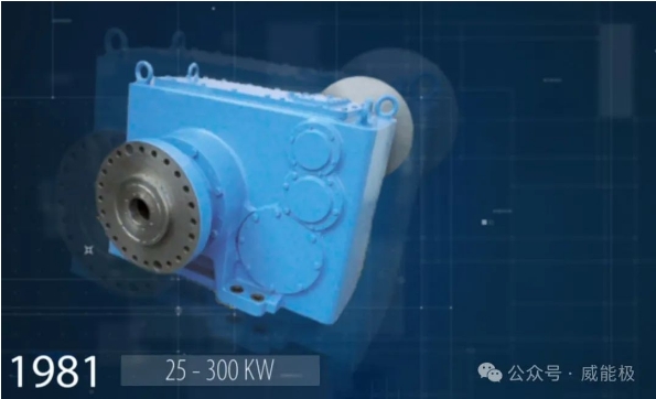 1981年,威能極推出風電專用齒輪箱,開創了平行級齒輪箱由傳統的減速箱到增速箱應用的先河,為風電行業從幾十千瓦級到百千瓦級的驅動問題找到了當時更為成熟的解決方案。