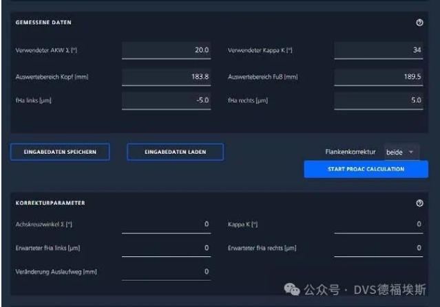 在實(shí)際應(yīng)用中,當(dāng)首件測(cè)量報(bào)告顯示fHa不理想,需要優(yōu)化時(shí),操作員只需將現(xiàn)有加工參數(shù)和fHa數(shù)值輸入ProAC界面,并選擇需要優(yōu)化的齒面。點(diǎn)擊“開(kāi)始ProAC計(jì)算”按鈕后,系統(tǒng)即可快速返回建議的加工參數(shù)。