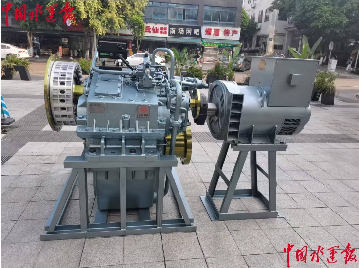圖為杭齒開發的首款機電一體化船用混合動力齒輪箱成套系統,左邊為增強型船用齒輪箱,右邊為高效永磁電機