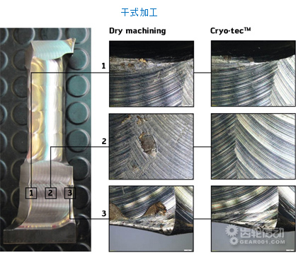 粗加工后葉片根部部位的表面質(zhì)量,一個(gè)采用干式加工方式,另一個(gè)采用二氧化碳加空氣冷卻工藝。